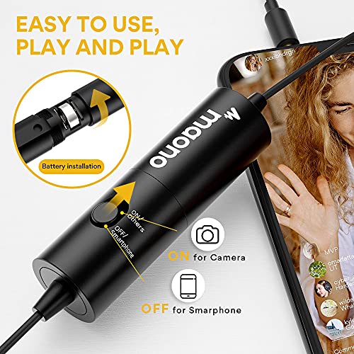 MAONO - ميكروفون لافالير بمشبك مكثف AU-100 مع كابل صوت بطول 6 متر من ماونو، أسود