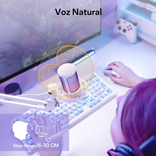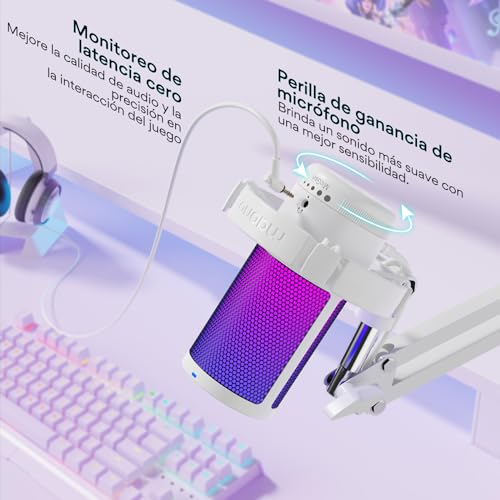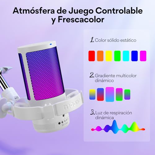 - إضاءة RGB قابلة للتحكم - يمكنك تغيير لون مصابيح الفضاء اللوني ار جي بي لتتناسب مع جمالية البث في لعبتك. يحتوي ميكروفون الكمبيوتر بمنفذ USB على 9 أوضاع إضاءة RGB مخصصة، وتأثيرات إضاءة سلسة ومنسقة تجعل الألعاب أو بث الفيديو الخاص بك مميزًا عن الآخرين، اضغط لفترة طويلة على زر RGB لإيقاف تشغيل مصابيح RGB.