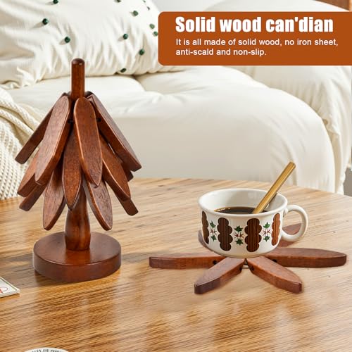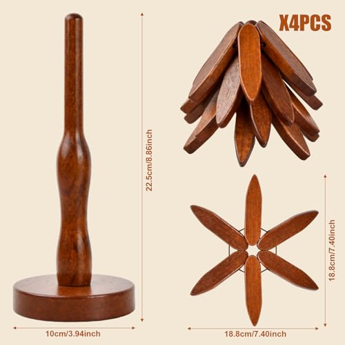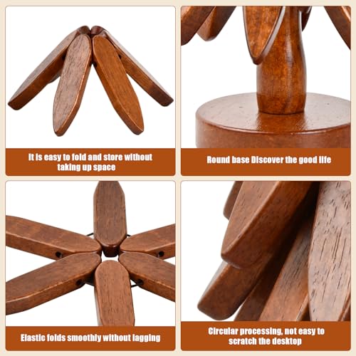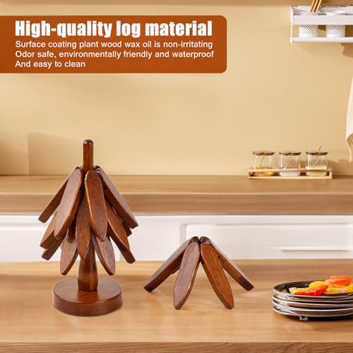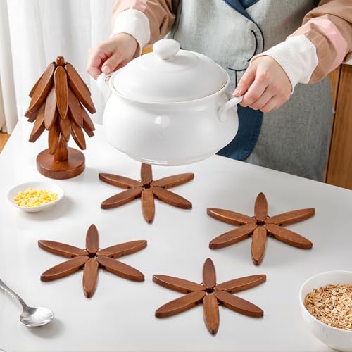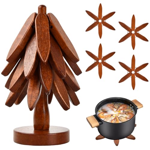 Mapille - حامل أواني خشبي للأطباق الساخنة، شجرة حامل خشبية، 4 حوامل خشبية + 1 حامل، حامل خشبي قابل للطي للأواني الساخنة/المقالي/الأطباق العميقة من مابيل، (B)