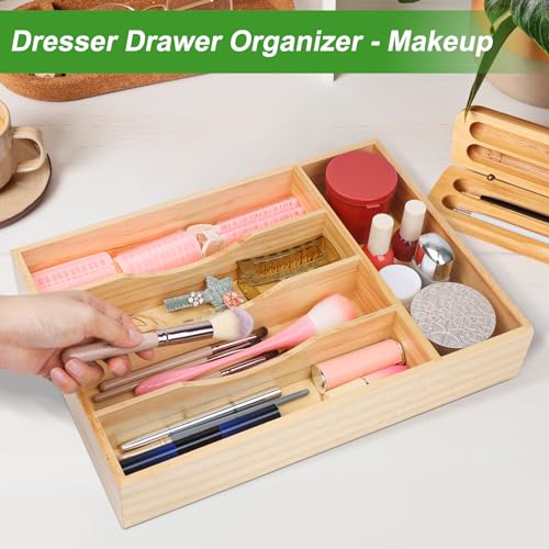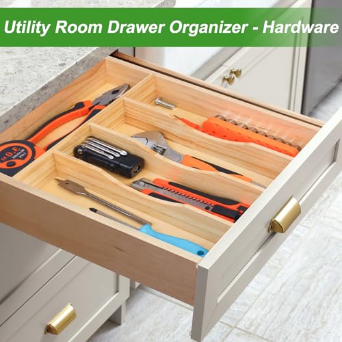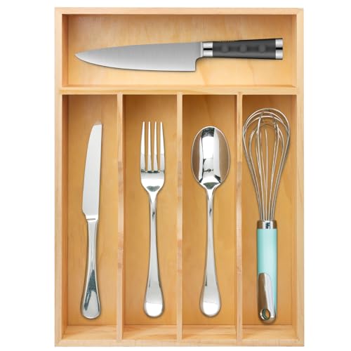 MapleGrace - منظم ادراج ادوات المائدة الفضية المصنوعة من الخيزران مابل جريس - صينية تنظيم خشبية للفضيات 5 فتحات درج للادراج وتخزين المطبخ للاواني والشوك والملاعق والسكاكين