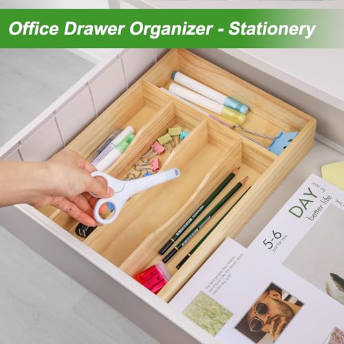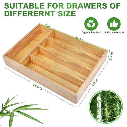 - 【حجم مثالي يناسب الدرج القياسي】منظم أدوات المائدة هذا للمطبخ: 13.9 انش طول × 9.84 انش عرض × 2.36 انش ارتفاع. صينية أدوات المائدة المصنوعة من الخيزران تناسب الأدراج القياسية والصغيرة، سهلة الاستخدام ومثالية للمساعدة في زيادة مساحة تخزين المطبخ.