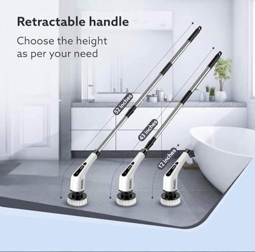 Mappit - فرشاة تنظيف دوارة كهربائية رويال من مابيت، فرشاة تنظيف للمنزل، 400 دورة في الدقيقة - 8 رؤوس فرشاة قابلة للاستبدال - وقت عمل 90 دقيقة، 3 مقاسات قابلة للتعديل، سرعتان قابلتان للتعديل للحمام وحوض