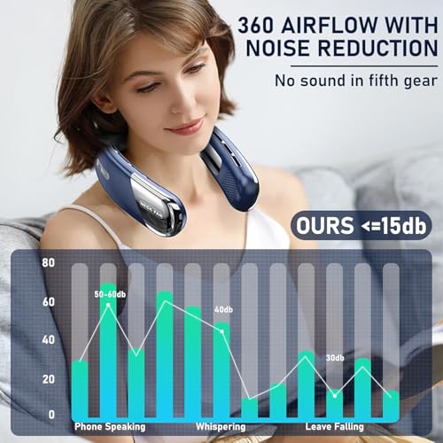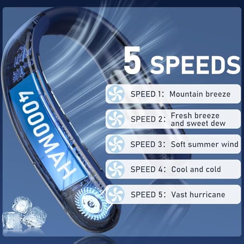 - 【5 سرعات وشاشة ال اي دي كبيرة】مروحة الرقبة المعلقة الخاصة بنا مجهزة بشاشة ال اي دي كبيرة تعرض سعة البطارية و5 مستويات لسرعة الرياح، مما يجعل تشغيلها مريحًا وذكيًا. استمتع بوضوح شاشة ليد فائق، ما يضمن الرؤية ليلاً ونهارًا بدون وهج، ما يعزز الراحة ومقاومة البهتان.