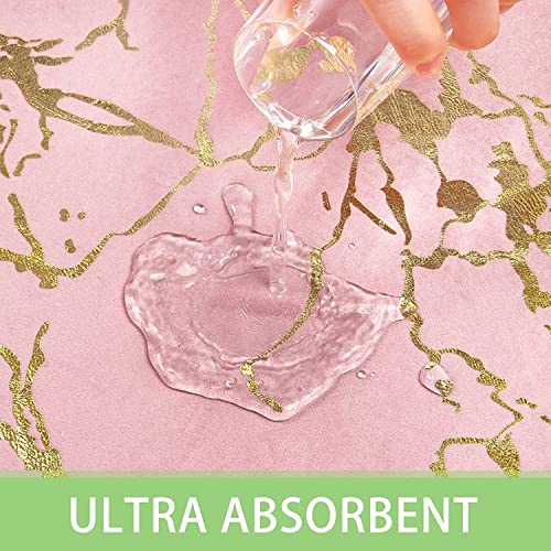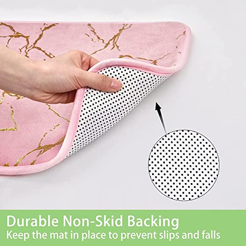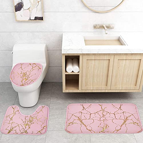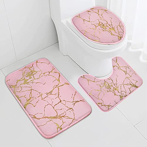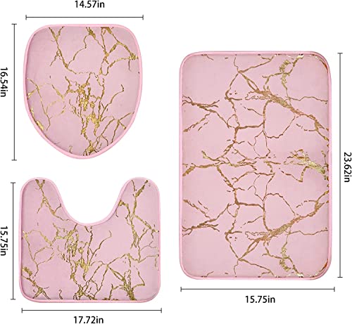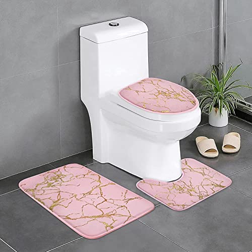 Spaceshoop - طقم دواسات حمام بنمط رخامي عصري مع غطاء مقعد التواليت مضادة للانزلاق وقابلة للغسل، اكسسوارات حمام من 3 قطع لون ذهبي (بينك)، أكريليك