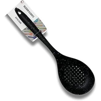 Generic - مغرفة قلي مثقبة غير لاصقة بتصميم رخامي – لون أسود