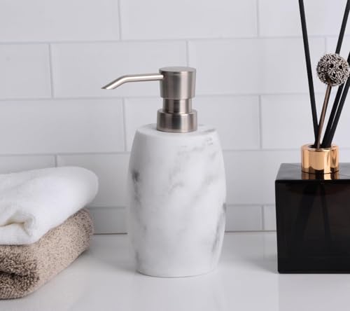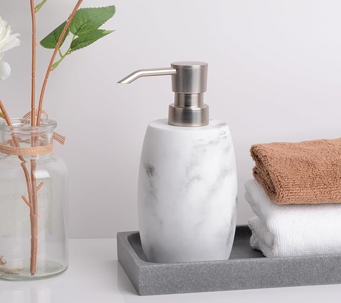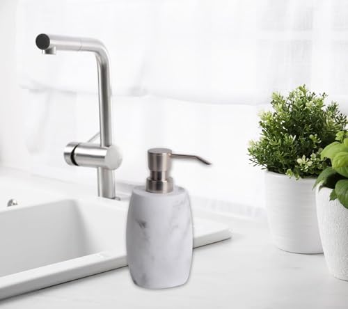 - 【نمط رخامي وفكرة هدية】 يتميز موزع صابون الأطباق الخاص بنا بالرقي البسيط بخطوطه النظيفة ونمط الرخام الأنيق. تم تصميمه ليكمل المساحات الحديثة، ويعزز أجواء الحمامات والمطابخ والمكاتب. يُعد هدية مدروسة وأنيقة للعائلة والأصدقاء.
