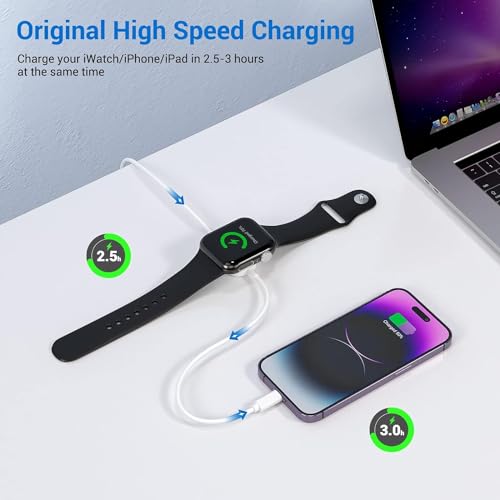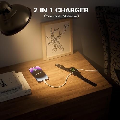 Marchpower - شاحن 2 في 1 لساعة آبل من مارشبور كابل شحن مغناطيسي محمول بطول متر اي ووتش متوافق مع ساعة SE - 8 - 7 - 6 - 5 - 4 - 3 - - وآيفون 14 - 13 - 12 - 11 - برو - XR