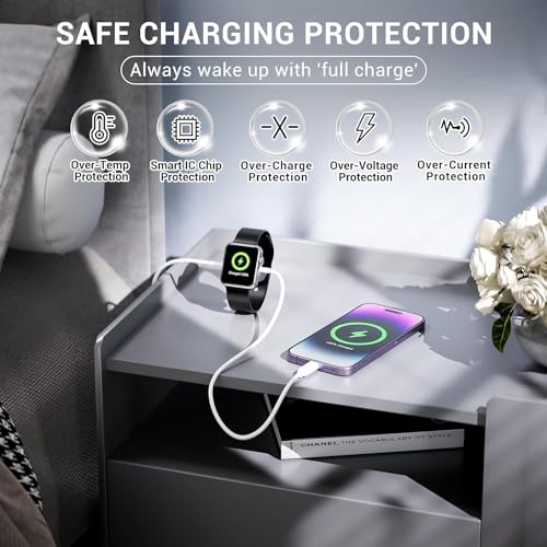 - شحن سريع: اشحن ساعة ابل بالكامل خلال 2.5 ساعة بقلب نحاسي نقي للشحن الآمن (ملاحظة: لتجنب ارتفاع درجة الحرارة، قم بشحنها بدون الجراب). مع محول الشحن السريع 20 واط، يمكنك بسهولة شحن ايفون 8 أو أعلى من 0% إلى 50% في 30 دقيقة. يتم شحن الشواحن 2 في 1 في نفس الوقت دون إزعاج بعضها البعض!.