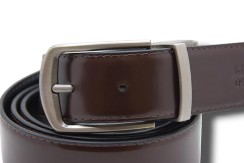 Marco Capelli - صندوق حزام جلد كلاسيكي مزدوج الوجه للرجال بلون اسود وبني MC2