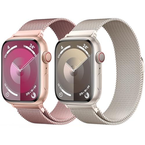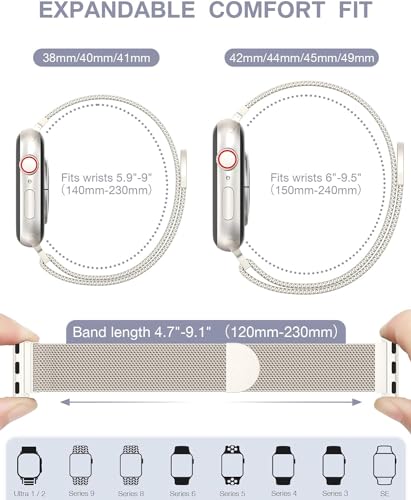 MARGE PLUS - سوار حلقي شبكي متوافق مع سوار ساعة آبل 38/ 40/ 41/ 42/ 44/ 45/ 49 ملم سلسلة الترا SE 9 8 7 6 5 4 3 2 1 للنساء والرجال من مارج بلس، حلقة فولاذ مقاوم للصدأ مع مشبك مغناطيسي لسوار اي ووتش