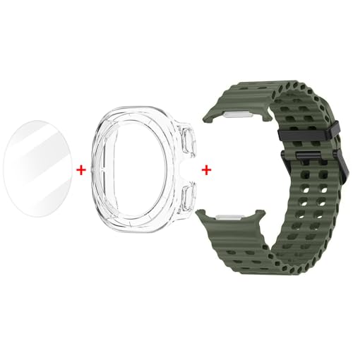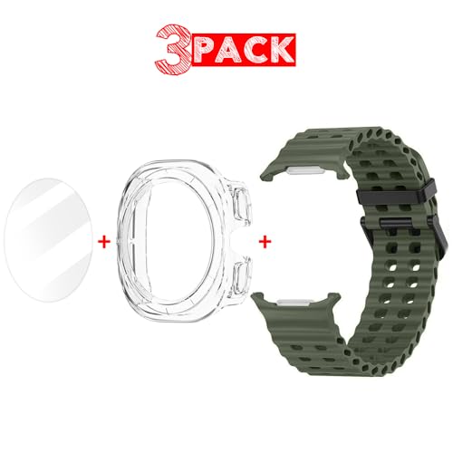 MARGOUN - مارجون سوار ساعة سامسونج جالاكسي 7 الترا 47 ملم، سوار رياضي متين من السيليكون الناعم مع غطاء حماية شفاف وواقي شاشة من الزجاج المقوى، عبوة من 3 قطع