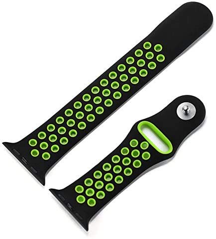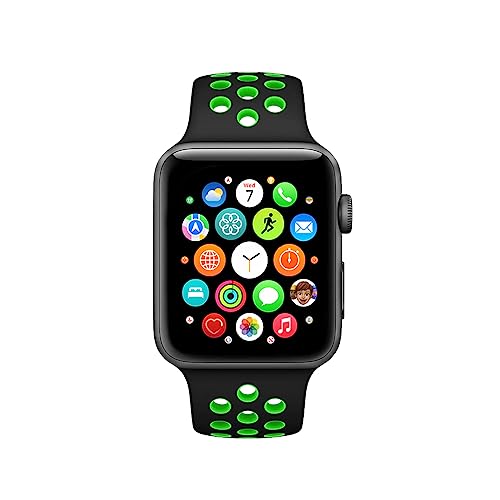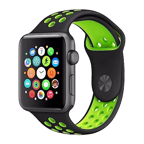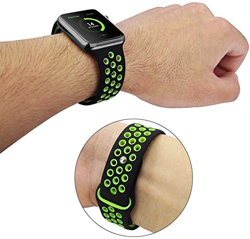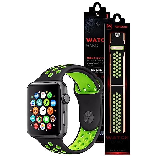 MARGOUN - سوار رياضي سيليكون بديل وناعم لساعة آبل اي ووتش الترا 8/7/ SE/ 6/ 5/ 4/ 3/ 2/ 1 ونايكي وسبورت وايديشن مقاس 45 و44 و42 و49 ملم من مارجون (لون أسود وأخضر)