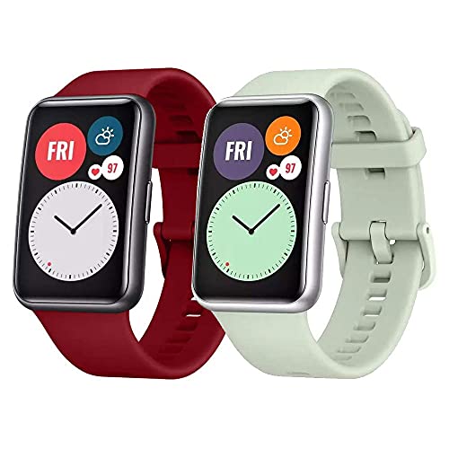 MARGOUN - سوار بديل من السيليكون لساعة هواوي فيت من مارجون (قطعتان، أخضر مينت/نبيتي)