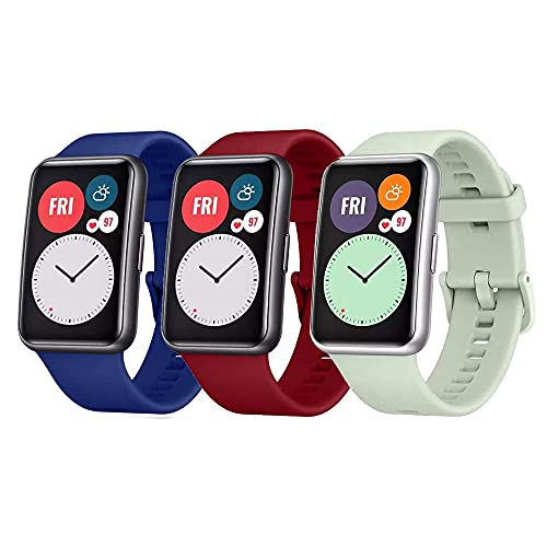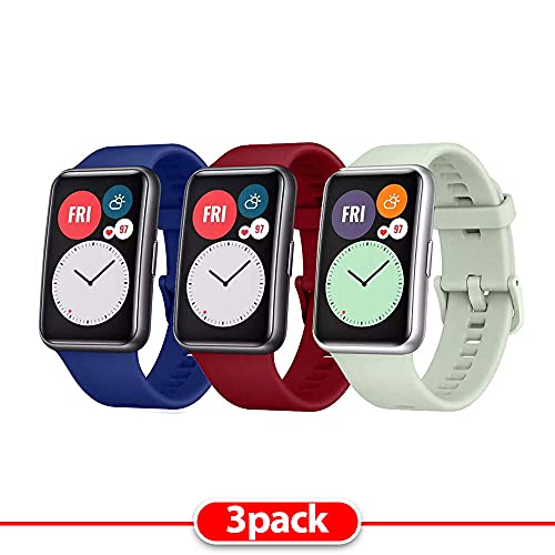 MARGOUN - سوار بديل من السيليكون لساعة هواوي فيت من مارجون (3 قطع، أخضر مينت/نبيتي/ أزرق داكن)