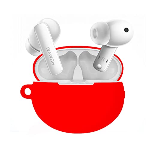 MARGOUN - جراب من السيليكون مع سلسلة مفاتيح لسماعات هواوي فري بادز 5i نارجون لون احمر