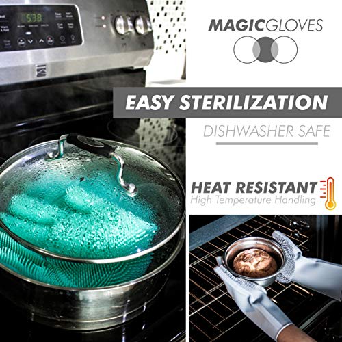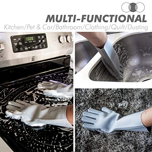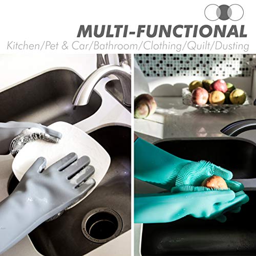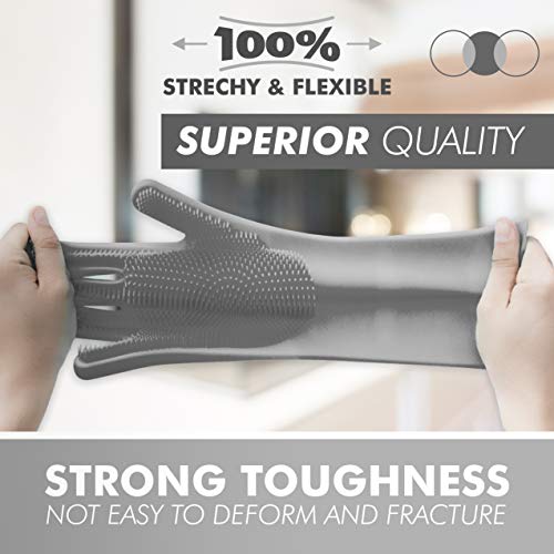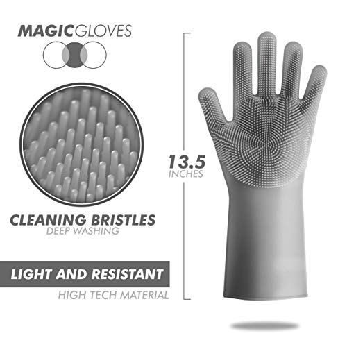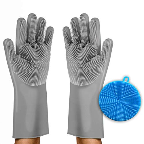 Marin Co - جوانتي تنظيف سحرية من السيليكون مع اسفنجة سيليكون من مارين كو زوج من قفازات التنظيف (رمادي)