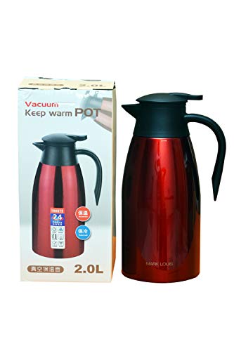 MARK LOUIS - شفشق قهوة حراري من الفولاذ المقاوم للصدأ بجدار مزدوج سعة 2 لتر مع احتفاظ 12 سا في الحرارة مناسب للشاي والماء والقهوة من مارك لويس، أحمر