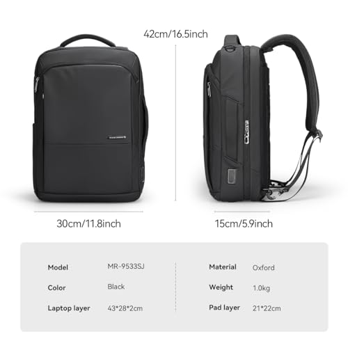 Muzee - شنطة ظهر للاب توب 3 في 1 للرجال مقاس 15.6 انش للاعمال من مارك رايدن، شنطة ظهر خفيفة الوزن مع منفذ USB، اسود، 30 سم × 11 سم × 42 سم، للاعمال