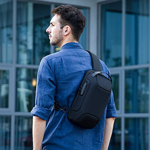 MARK RYDEN - شنطة يد كروس مضادة للسرقة بحزام يحمل على الصدر، كتف للرجال مقاومة للماء تناسب جهاز ايباد 9.7 بوصة من مارك رايدن, أسود-2