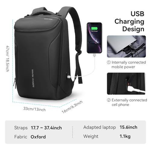 MARK RYDEN - شنطة ظهر كبيرة للرجال من مارك رايدن، سعة كبيرة ومقاومة للماء بمنفذ شحن USB، للمدرسة والسفر والمشي لمسافات طويلة، تناسب لاب توب بمقاس اقل من 17.3 بوصة