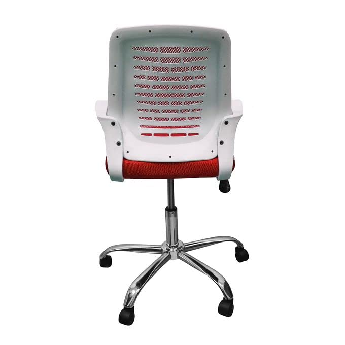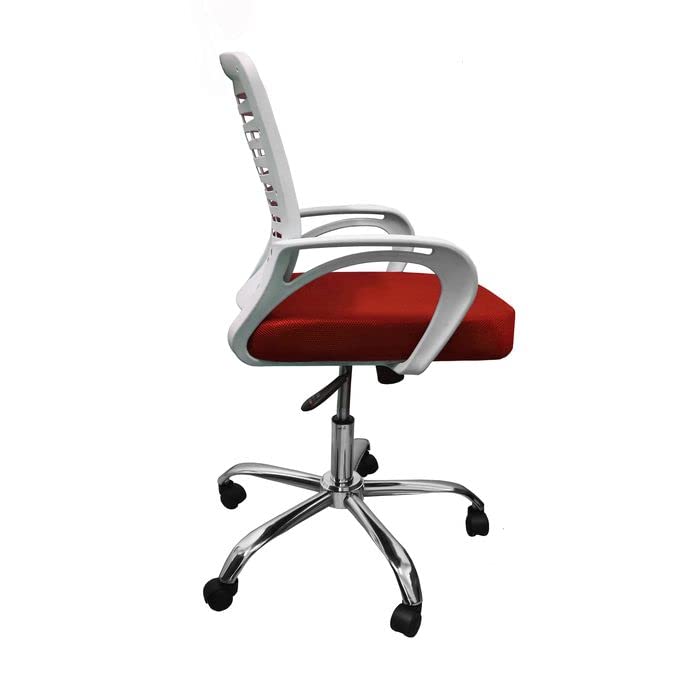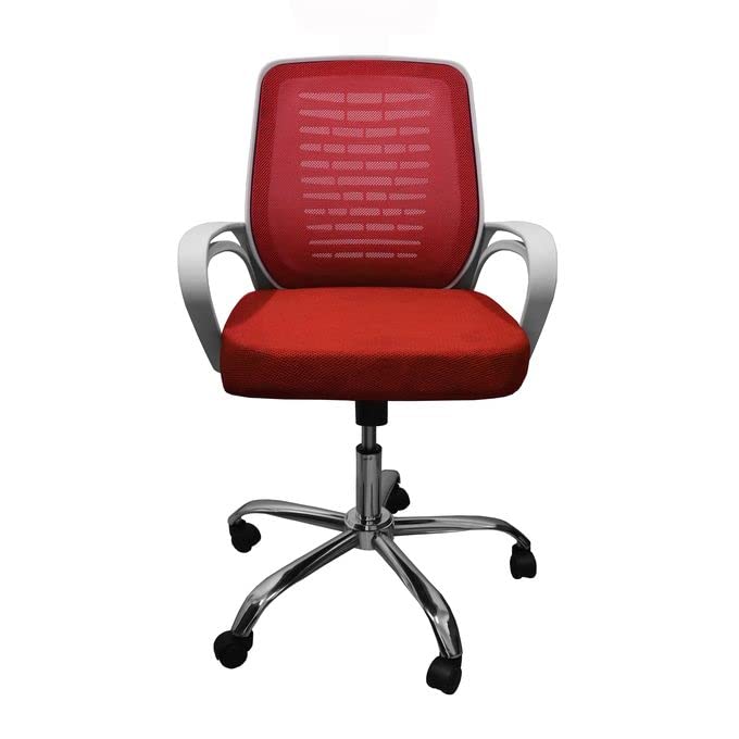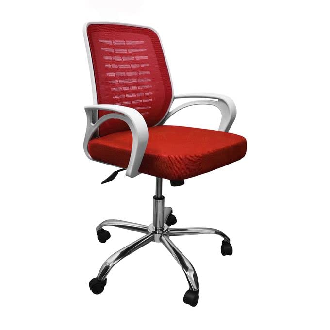 Silver - كرسي مكتب متميز بلاستيك أبيض مع مسند رأس قابل للتعديل ظهر شبكي وسره معدن قوي - ماركت مصر (أحمر، كرسي متوسط)