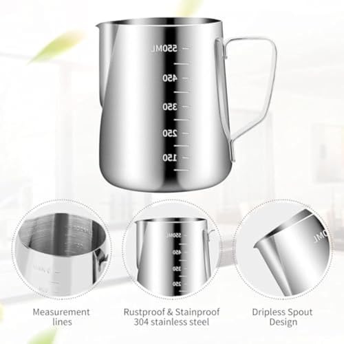- مقياس قياس واضح - شفشق تبخير الاسبريسو منقوش بمقاييس قياس على كلا الجانبين لقياس مستوى السائل والتحكم في كمية اللبن أو القهوة أثناء الصب، سهل القراءة ويبدو أنيقًا.