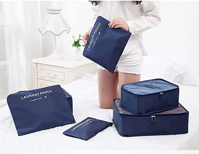MarlaMall - طقم شنط واكياس تخزين مكعبة الشكل لتنظيم الظهر والسفر مكونة من 6 قطع ازرق مارلا مول نايلون