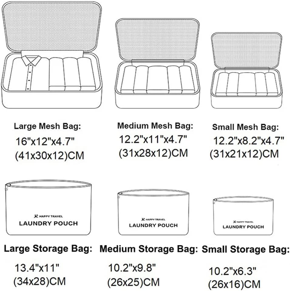 - 6 حقائب بأحجام مختلفة: تتضمن مجموعة منظم الأمتعة 3 مكعبات تعبئة للسفر + 3 أكياس ضغط.