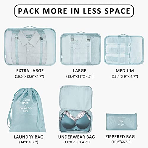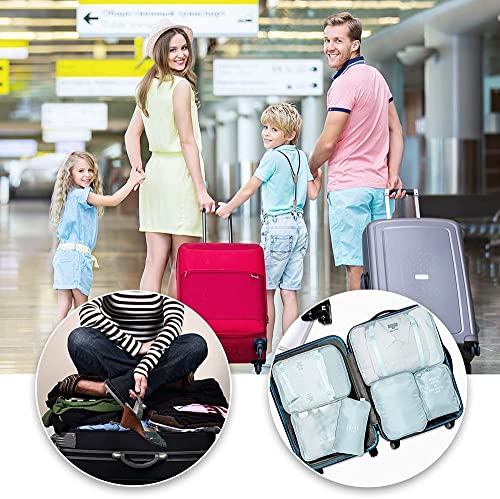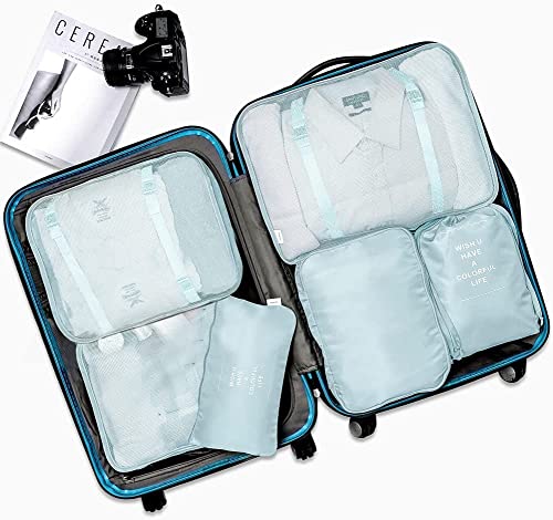 MarlaMall - مارلا مول 6 قطع من حقائب السفر المكعبة مجموعة شنط منظمة للامتعة خفيفة الوزن للحمل على شنطة التخزين مقاومة للماء ازرق نايلون