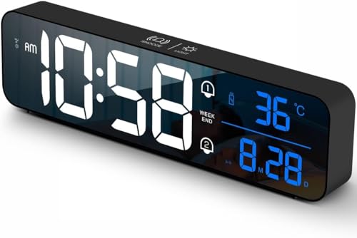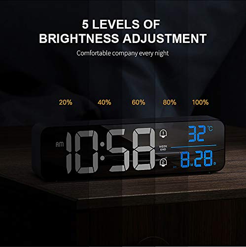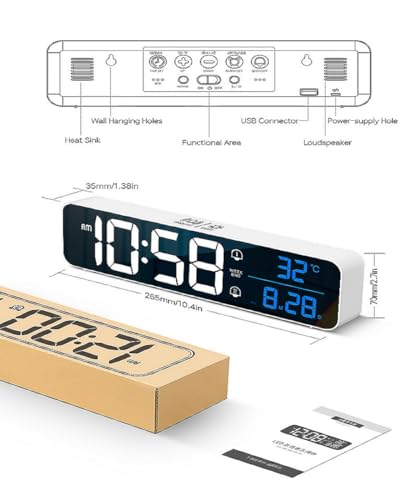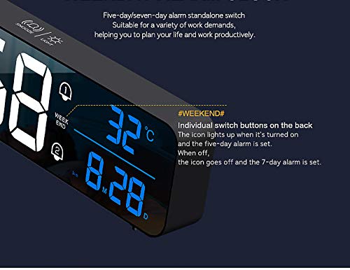 - 【شاشة LED كبيرة】تحتوي الساعة الرقمية على شاشة عرض كبيرة، والأرقام ساطعة، ومن السهل جدًا قراءتها حتى من مسافة بعيدة ومن جميع الزوايا. تحتوي على جميع الميزات التي قد تتوقعها لساعة منبه رقمية: الوقت والتاريخ ودرجة الحرارة.
