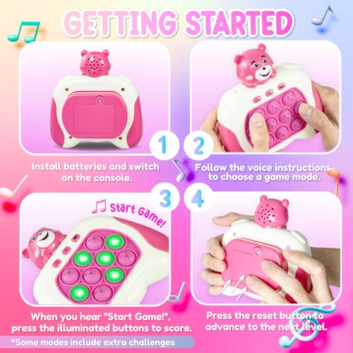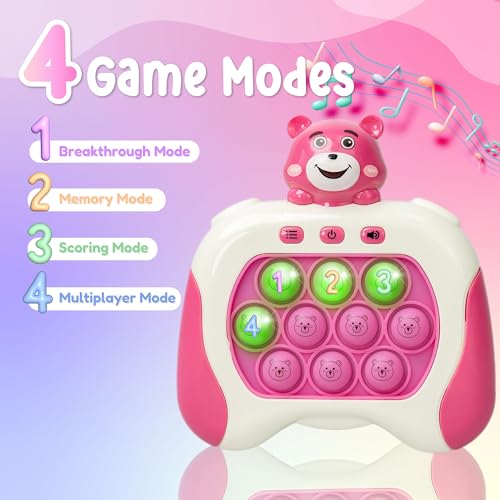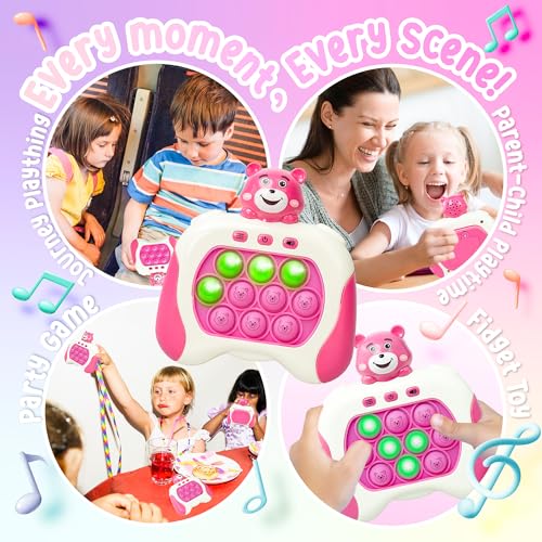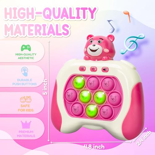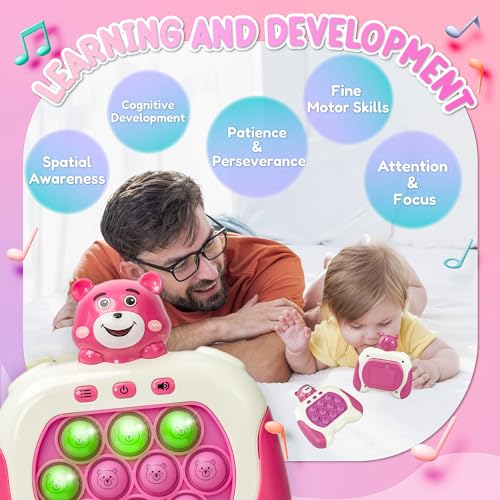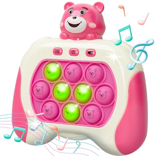Marlo & Buzz - لعبة دفع سريع من مارلو اند باز مع وحدة تحكم في ألعاب بوب بيت، لعبة بوب فيدجيت مع بوبر إلكتروني ليد، تحسين سرعة رد فعل الأطفال وردود الفعل، لعبة فقاعية سريعة، ألعاب جيب (دب وردي)