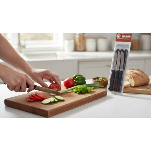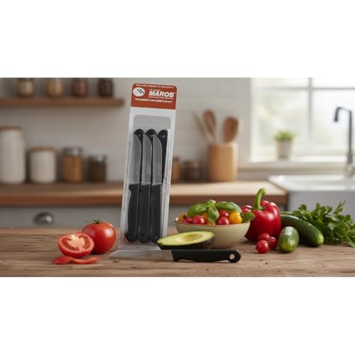 MAROB - طقم سكاكين طاولة مسننة بمقبض من ماروب - أسود