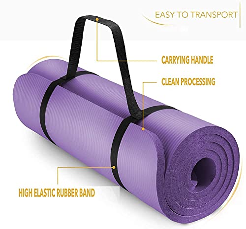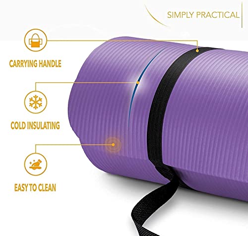Marshal Fitness - سجادة تمارين اليوجا من مارشال فيتنس، لون أرجواني، سمك 15 ملم، من النيوبرين المتين والمضاد للانزلاق، بحزام حمل للتمرين، صديقة للبيئة وللجيم المنزلي، سجادة تمارين اليوجا والبيلاتس (1.8 م × 61 سم)