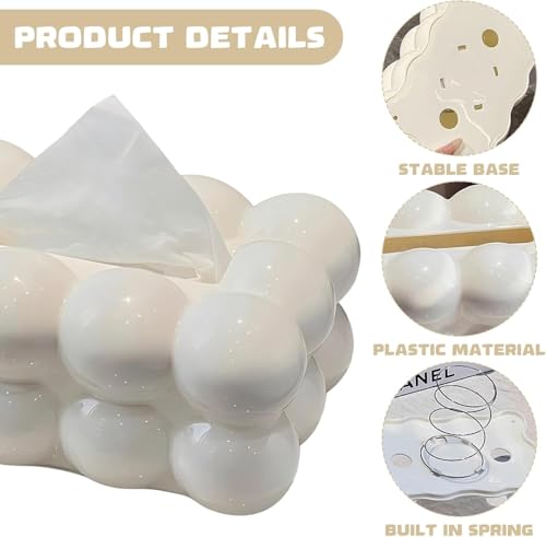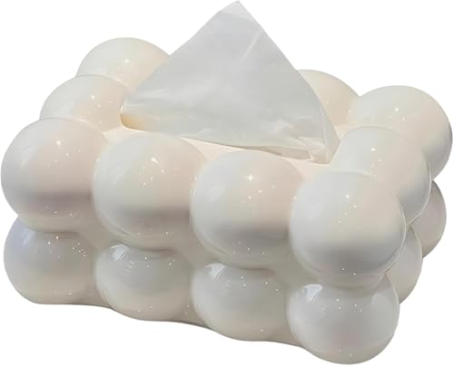 Spaceshoop - علبة مناديل بنمط فقاعات مارشميلو مستطيلة بتصميم مبتكر لطاولة الحفلات والمنزل والمكتب والمطعم (أبيض)
