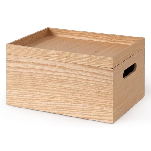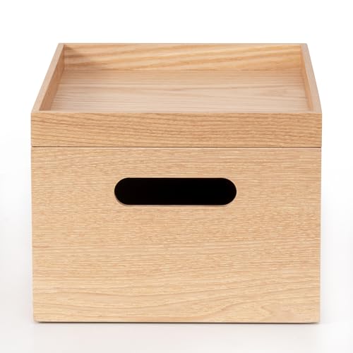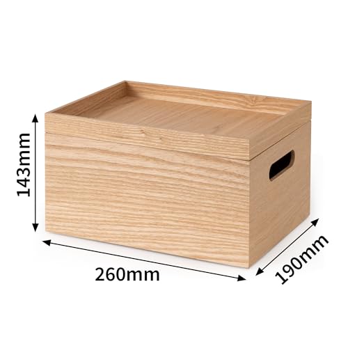 Marsmiles - صندوق تخزين خشبي متين مستطيل بمقابض من مارسمايلز - لوازم التخزين والتكديس - صينية متعددة الوظائف مع غطاء - تخزين بحجم صغير - العرض 25.9 سم × الارتفاع 19.05 سم