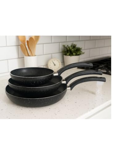 generic - طاسة قلي جرانيت تركي من مارتيف، 3 قطع - اسود