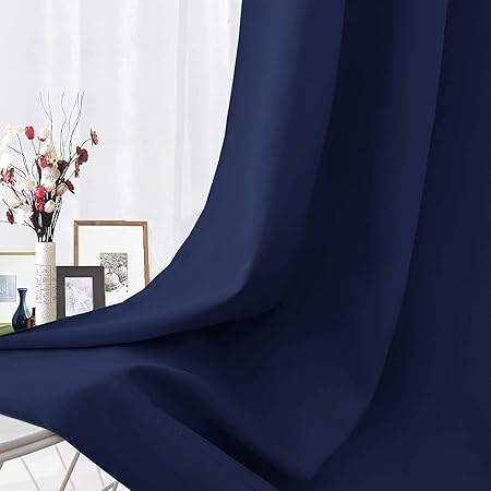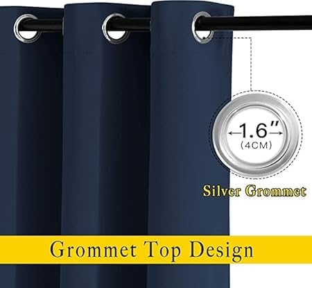 ArtTEX - ستائر بلاك اوت عازلة للحرارة بحلقات للتثبيت منارت تكس لغرفة المعيشة وغرفة النوم لوحة واحدة كحلي 132 سم عرض × 160 ارتفاع البوليستر سادة