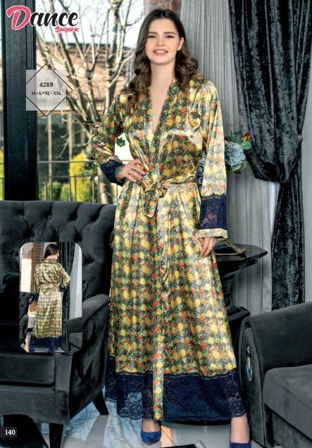 Marti Homewear & Lingerie - Marti Homewear & Lingerie 4289 Luxury Long Satin Robe with Floral Print and Lace Trim - Elegant Homewear Collection For Woman's