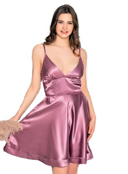 Marti Homewear & Lingerie - فستان نوم قصير انيق من الساتان مع رقبة V عميقة وصورة ظلية فضفاضة للنساء من مارتي هوم وير اند لانجري 4292