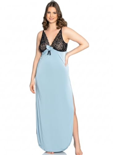 Marti Homewear & Lingerie - ملابس نوم نسائية فاخرة من مارتي هوم وير اند لانجري 4301 مقاس كبير من الساتان مع صدر دانتيل وفتحة جانبية، ملابس نوم نسائية فاخرة
