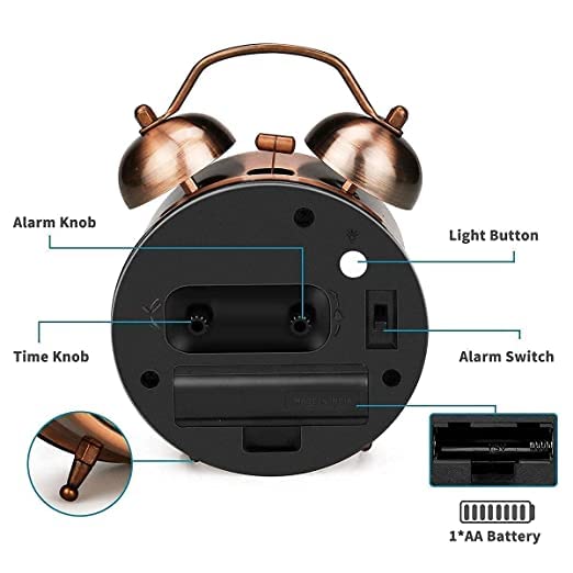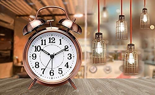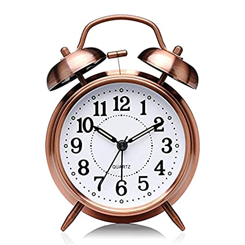 Marve - ساعة منبه بجرس مزدوج مع شاشة LED ليلية ومنبه لغرفة النوم والنوم الثقيل للاطفال والطلاب نحاسية معدن متعدد الألوان تناظري