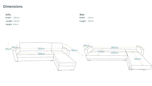 MAS Sofabed - كنبة سرير كينغستون من ماس بعرض 240 سم × طول 155 سم × عمق 90 سم، مصنوعة من خشب الصنوبر - لون رمادي