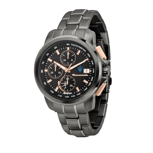 Maserati - ساعة من مجموعة سوكسيسو سولار بحركة كوارتز للرجال مازيراتي عرض للوقت فقط تعمل بطاقة شمسية - موديل R8873645001 رمادي 44mm