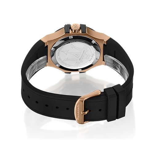 Maserati - ساعة كوارتز بوتينزا كوليكشن بعرض الوقت والتاريخ من الفولاذ المقاوم للصدأ بحواف روز جولد بي في دي للرجال من مازيراتي، لون أسود، R8851108002