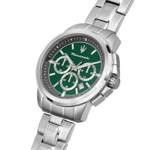 Maserati - ساعة يد ساكسيسو بحركة كوارتز وعرض أنالوج وسوار من الفولاذ المقاوم للصدأ للرجال من مازيراتي، لون فضي، تصميم كلاسيكي، موديل R8873621017