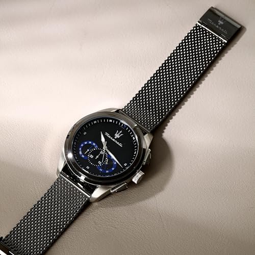 Maserati - ساعة من ماسيراتي للرجال، بمينا سوداء وسوار رمادي، عرض تناظري