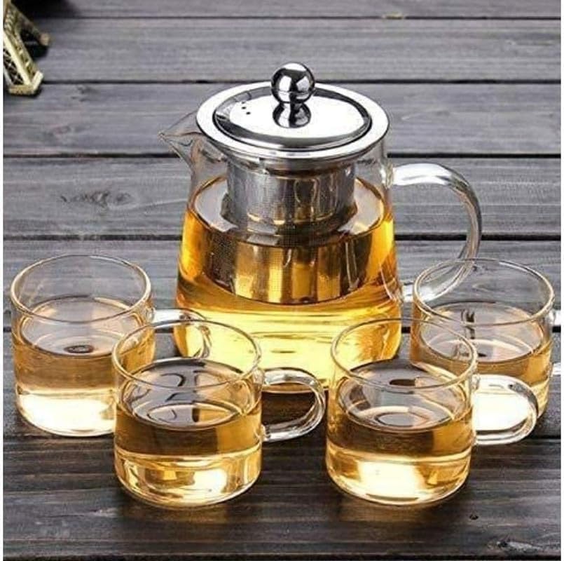 - ابريق شاي زجاجي سعة 950 مل × 1، كوب زجاجي 100 مل مع مقبض × 4