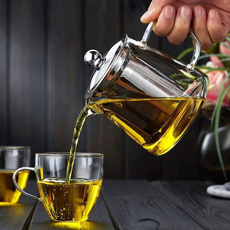 - طقم إبريق الشاي الزجاجي مصنوع من زجاج البوروسيليكات المقاوم للحرارة، آمن على الموقد وكذلك آمن للاستخدام في الميكروويف. تهدف إلى غلي الماء مباشرة مع إبريق الشاي هذا، لن تضطر إلى المرور بمشاكل الماء المغلي مع غلاية شاي إضافية، مما يوفر وقتًا ممتعًا للشاي والقهوة.