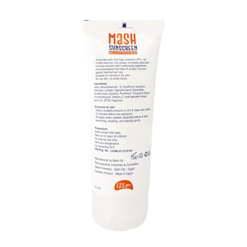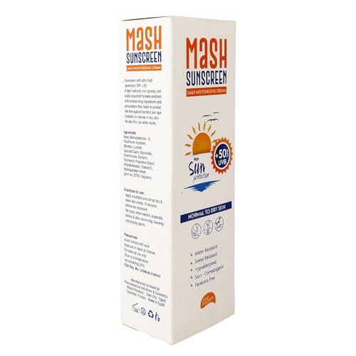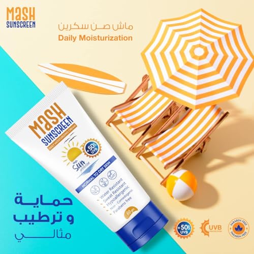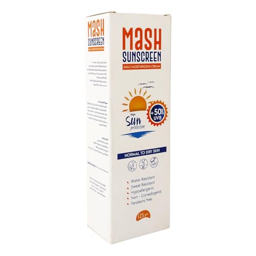 Mash sunScreen - كريم مرطب يومي للحماية من الشمس بعامل حماية من الشمس 50+ للبشرة العادية الى الجافة من ماش، 125 جم