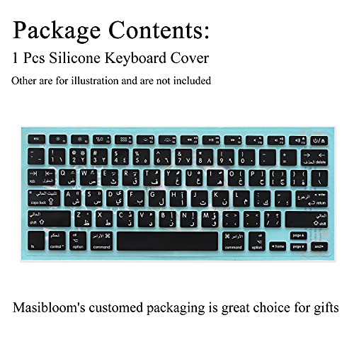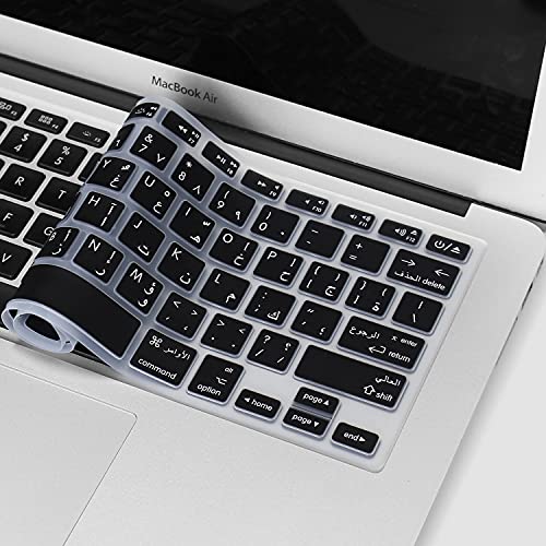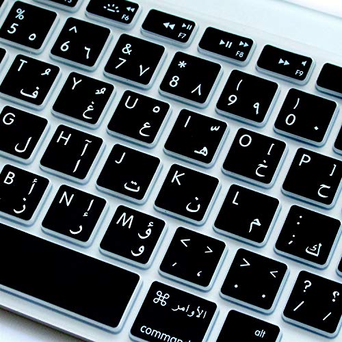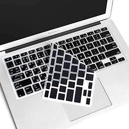 Masino - غطاء كيبورد من السيليكون باللغة العربية لجهاز ماك بوك اير 13 بوصة ماك بوك برو مع / بدون شاشة ريتينا 13 بوصة 15 بوصة 17 بوصة MC184LL/B، غير متوافق مع ماك بوك اير الجديد 13 بوصة A1932 من ماسينو (أسود)